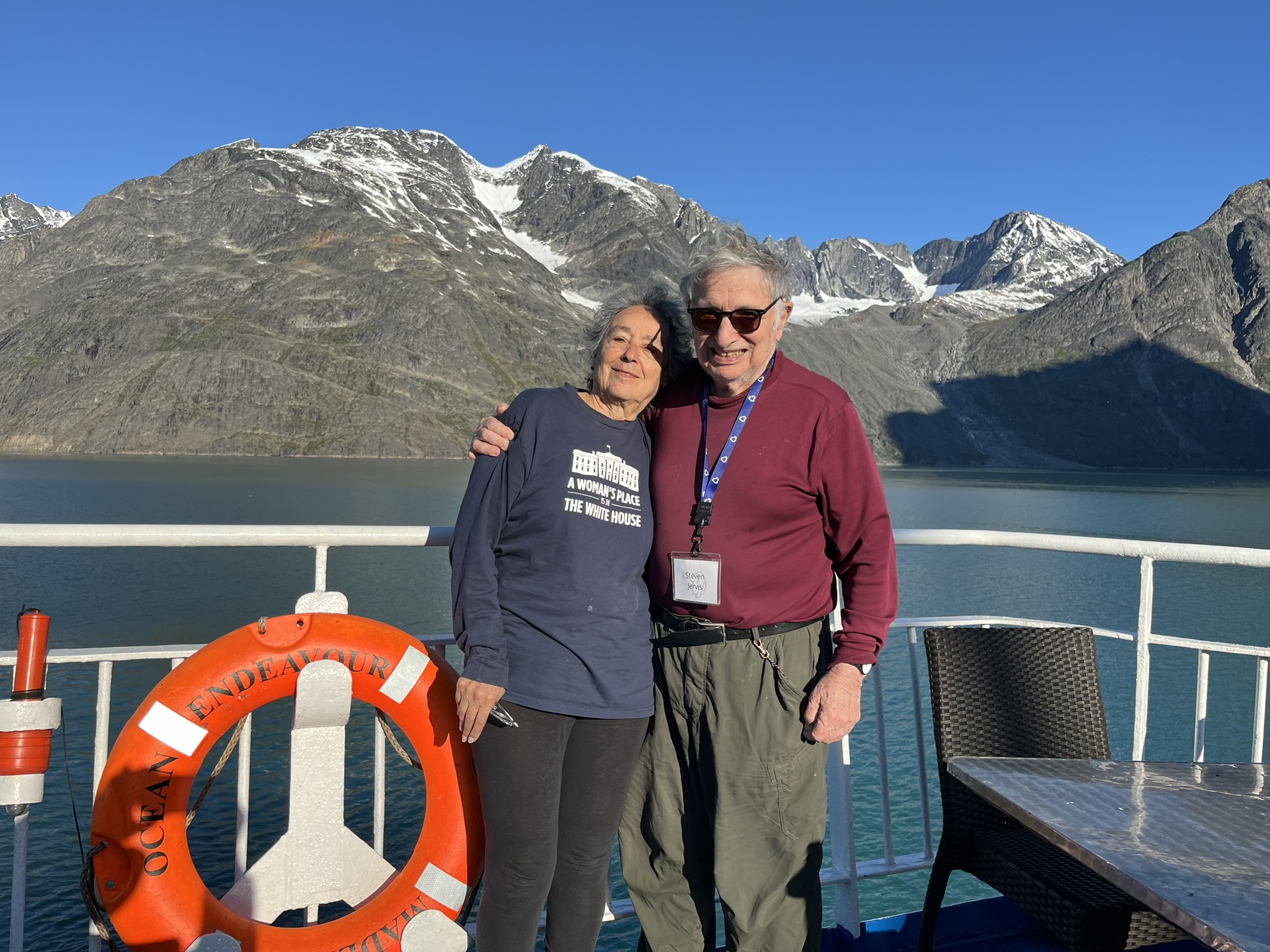 Last September (2023) in St. Johns, Newfoundland we disembarked our ship, the Ocean Endeavour. After two weeks in the Arctic. In July this year we got back on the same boat. This time we were in Iqaluit, Baffin Island, in the Canadian Arctic.. Its population is about 8000, more than half that of the entire island, which is the largest in Canada. We had a tour of downtown Iqaluit, The visitor center shares space with the library. Among the new books was Yiddish for Pirates, by Gary Berwin. Susan ordered a copy as soon as we got home.Except for the addition of a versatile coffee maker, the ship was little changed from 2023, so I will not redescribe it. We were 162 passengers, 51 of whom had traveled before with the same company. Thirty-eight of us were American (one from nearby in Brooklyn), most of the rest from Canada. Some Wild Women were aboard, just as in 2023. Many lectures and slide shows in the lounge. A staff guest, Tom Kovach, astoundingly memorized the first names of 209 people on board in a single day. He demonstrated this feat to a lounge full of us. Other guests included Bruce Kidd, who ran for Canada in the 1964 Olympics and became a sports historian. Having traveled in the Arctic with several different companies, we believe that what stands out with Adventure Canada is their commitment to the Inuit community—in hiring, opportunities to and inform guests about important issues, encouraging continuing education. On our trips we met a young Inuit archeologist, a lawyer, a woman just finishing an education degree.